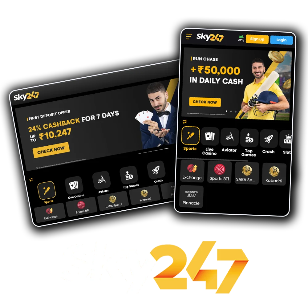 Sky247 hosts over 500 casino games alongside a full sportsbook covering cricket, football, tennis, and more. New players receive a 24% cashback welcome bonus up to 10,247 INR. The platform runs natively on Android and iOS, giving you full access on any device. Register today and put your first deposit to work with a bonus built for India players.